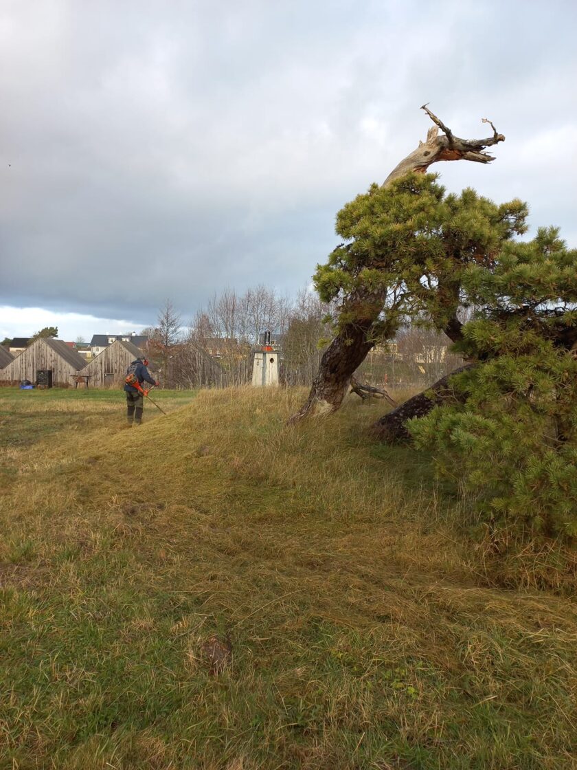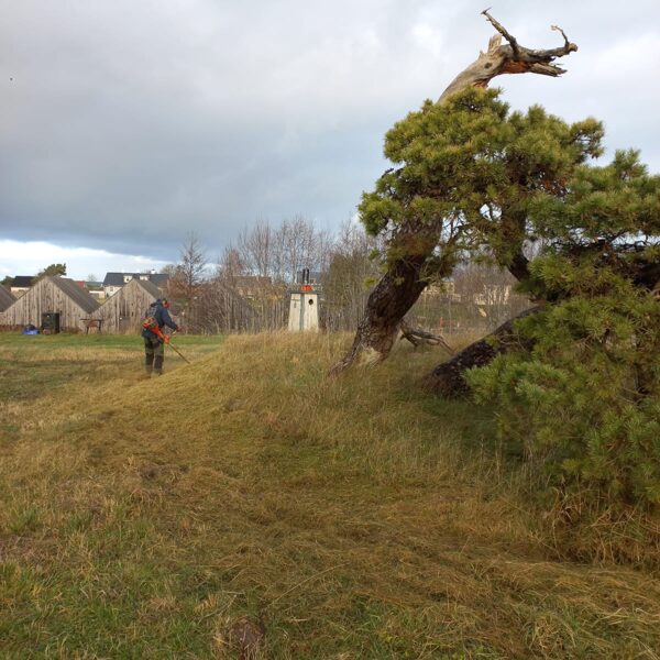 Izzāģēja priežu vainagos ieaugušos krūmus, nopļāva gadiem augušo kūlu un attīrīja priedes no nokaltušajām skujām.