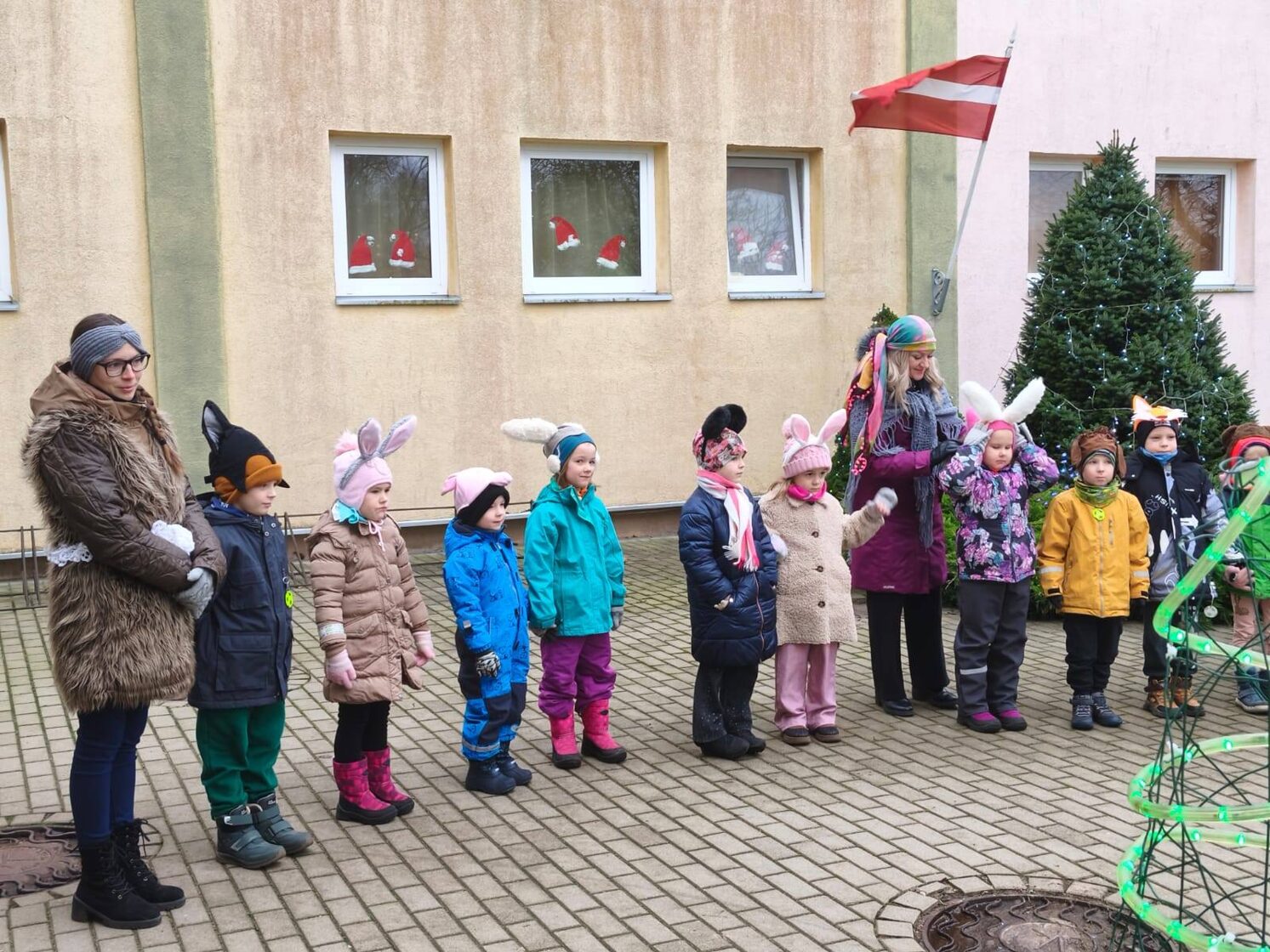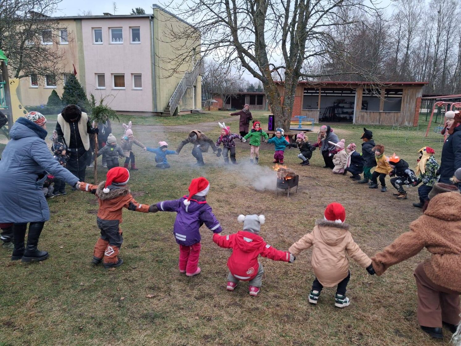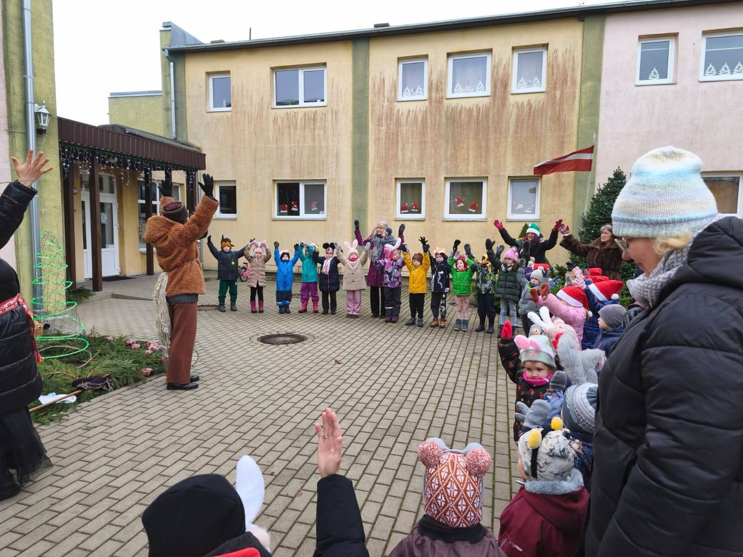 Godinot latviešu tautas tradīcijas Pāvilostas pilsētas PII “Dzintariņš” saime svin Ziemas saulgriežus ar bluķa rītu. Bluķa vilkšana atgādina saules kustību un sadedzināšana gaismas uzvaru pār tumsu. Bluķa dedzināšana atvieglo saules pagriešanos uz pavasara pusi un gaismas atgriešanos dabā. Senie latvieši vēla bluķi pa visu ciemu no mājas uz māju un ticēja, ka bluķī tiek novelts viss vecā gada grūtums. Bluķis tika sadedzināts par zīmi, ka vecā gada pūliņi pabeigti un Jauns gads var sākties. Šogad “Dzintariņam” bijis labs gads, jo Bluķa rītā sadegot pat bluķis smaida, bet “Dzintariņa” saime veselīgu, priecīgu un laimīgu arī nākamo gadu gaida.