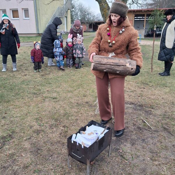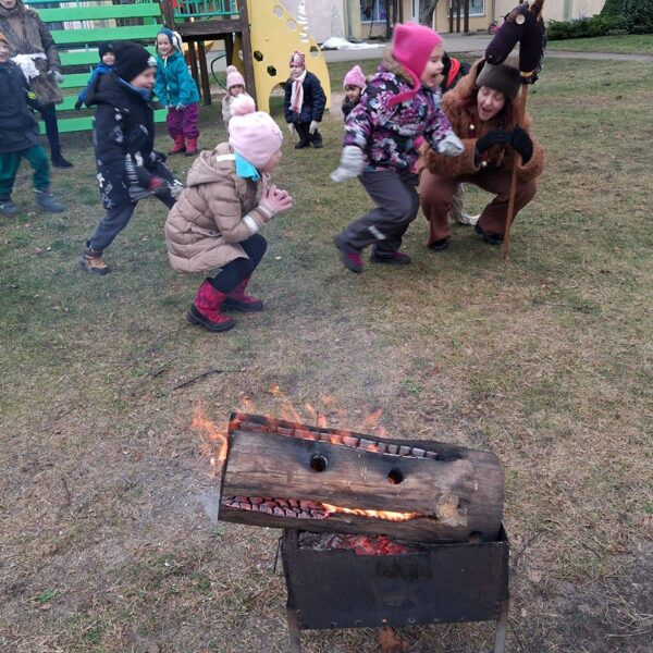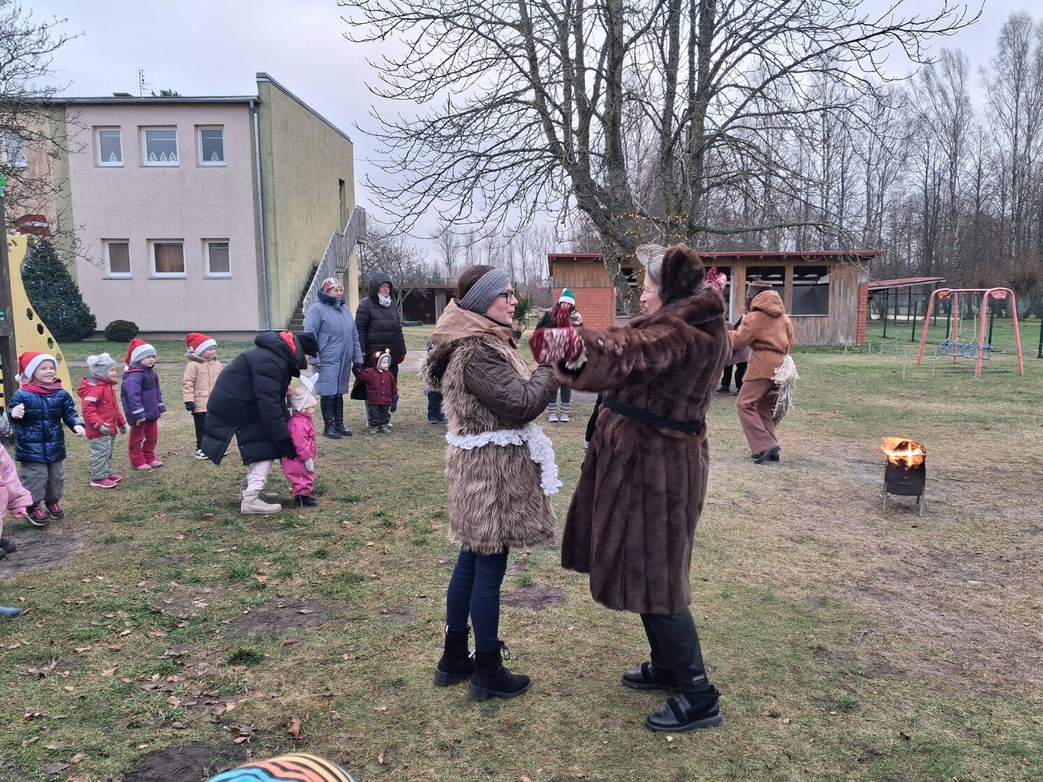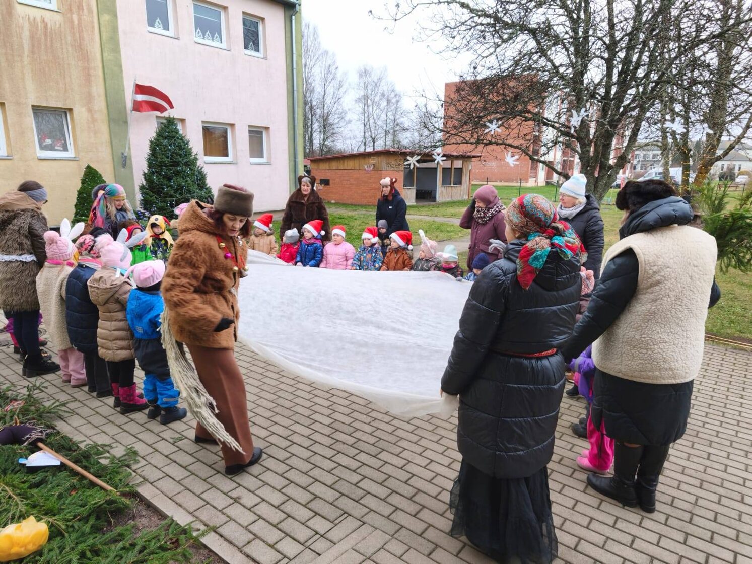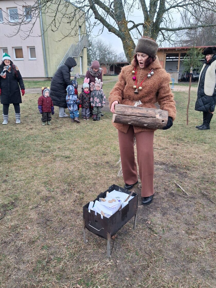 Godinot latviešu tautas tradīcijas Pāvilostas pilsētas PII “Dzintariņš” saime svin Ziemas saulgriežus ar bluķa rītu. Bluķa vilkšana atgādina saules kustību un sadedzināšana gaismas uzvaru pār tumsu. Bluķa dedzināšana atvieglo saules pagriešanos uz pavasara pusi un gaismas atgriešanos dabā. Senie latvieši vēla bluķi pa visu ciemu no mājas uz māju un ticēja, ka bluķī tiek novelts viss vecā gada grūtums. Bluķis tika sadedzināts par zīmi, ka vecā gada pūliņi pabeigti un Jauns gads var sākties. Šogad “Dzintariņam” bijis labs gads, jo Bluķa rītā sadegot pat bluķis smaida, bet “Dzintariņa” saime veselīgu, priecīgu un laimīgu arī nākamo gadu gaida.